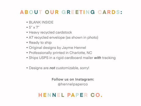Hi, I'm Jayme Hennel! I own Hennel Paper Co., a hand illustrated paper goods, gifts and design studio focused on creating cheery & cheeky products that are assured to brighten your day.
